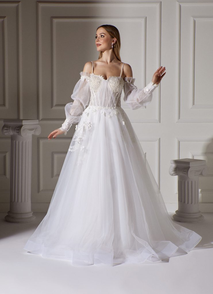 Bu gelinlik, modern kültürün cesur ve enerjik dokunuşlarını benimseyen kadınlar için.