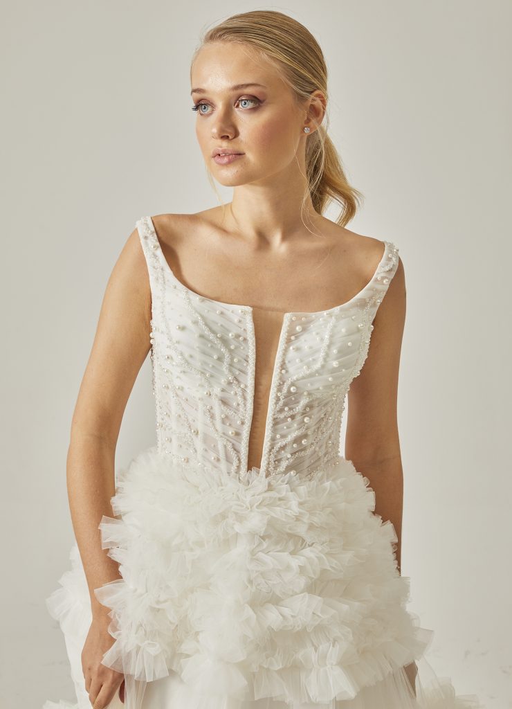 Bu gelinlik, romantizmi ve zarafeti hayatının merkezine koyan kadınlar için.